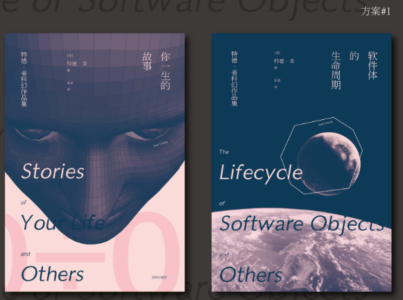 译林:这两本书的封面前后经过了好几个月的修改与调整。最初我们想请设计师按照小说内容绘封面图,然后再根据图来设计封面。但是经过多次尝试,效果均不理想,只好作罢。后来另找了设计师,她最先提供了两个设计方向。两个方向一个偏科幻(方案#1),一个偏文艺(方案#2),我们都非常喜欢。经过再三讨论,我们选择了偏科幻的设计方案,并在这个方案的基础上进行了多次调整,最终促成了现在的封面。